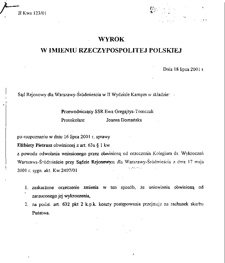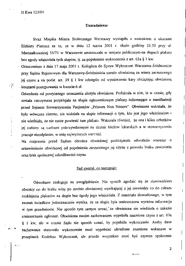 A new ombudsman was elected in Poland last year. Our relations with his predecessor (professor A. Zielinski) were very good. The present ombudsman, professor A. Zoll, is a lawyer from Cracow.... / ....this part of text is temporaly hiden..../.... He wrote a letter to the minister of justice suggesting investigations into the weblist of medical malpractice victims, banning the list and punishing us and the listed malpractice victims for ruining the medical lobby's image (cf: art. 15 and 16 of the Recommendation Rec. (2000) 5, Council of Europe Ministers' Committee). The prosecution agreed to open the case.